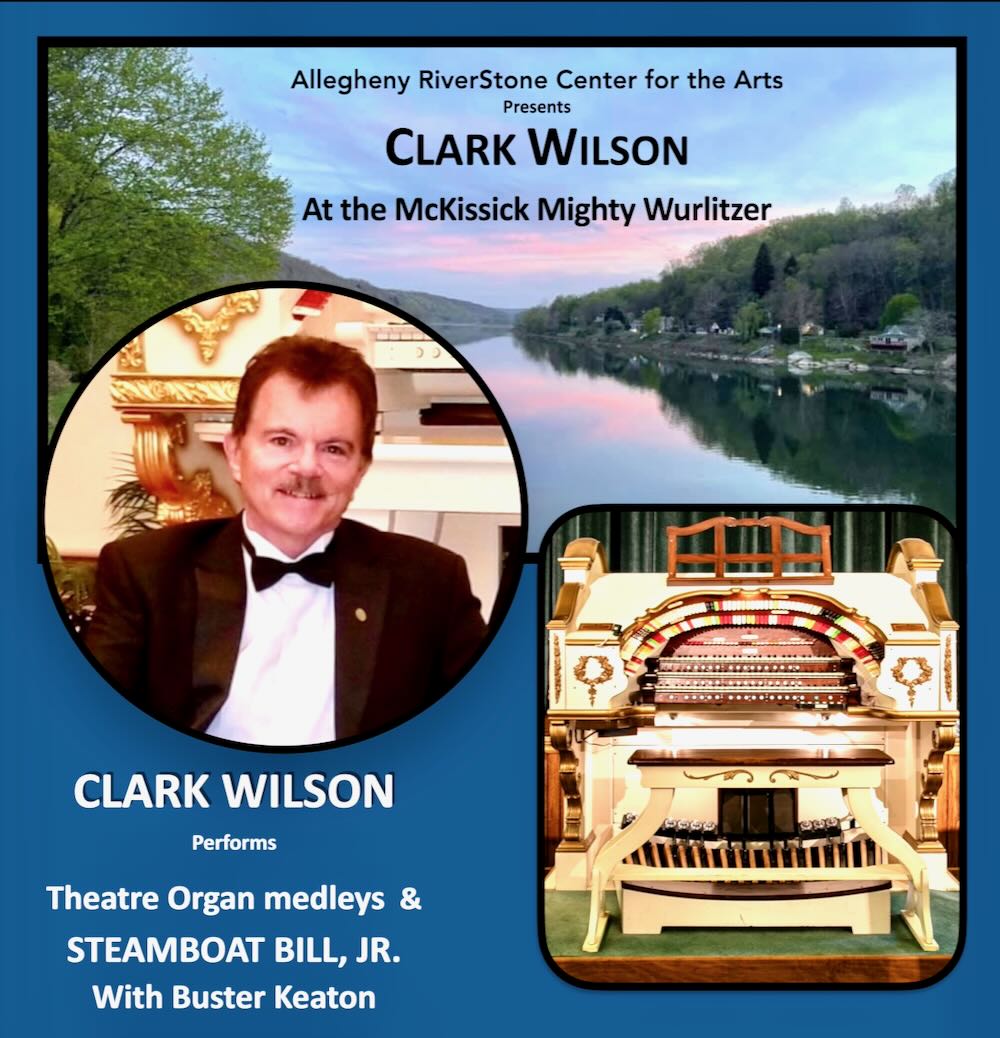 Come on down to the river in Foxburg and celebrate Spring on the beautiful Allegheny as internationally renowned theatre organist and consummate nationally touring silent movie accompanist CLARK WILSON returns to Lincoln Hall to perform on the newly restored McKissick Mighty Wurlitzer on Sunday, May 31, 2026 at 2 PM.